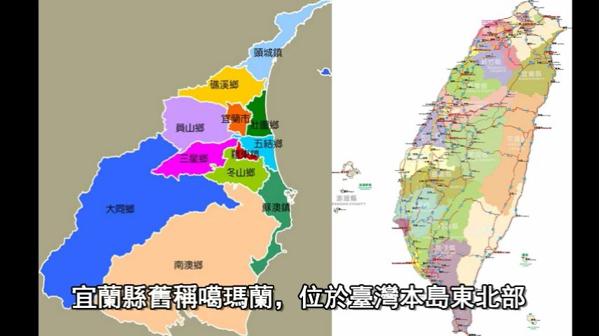 宜蘭縣舊稱噶瑪蘭,位於臺灣本島東北部